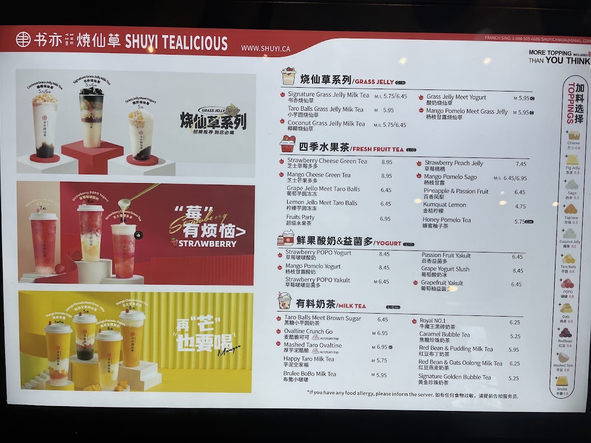 Shuyi Tealicious - ON K1N 7G3 Menu